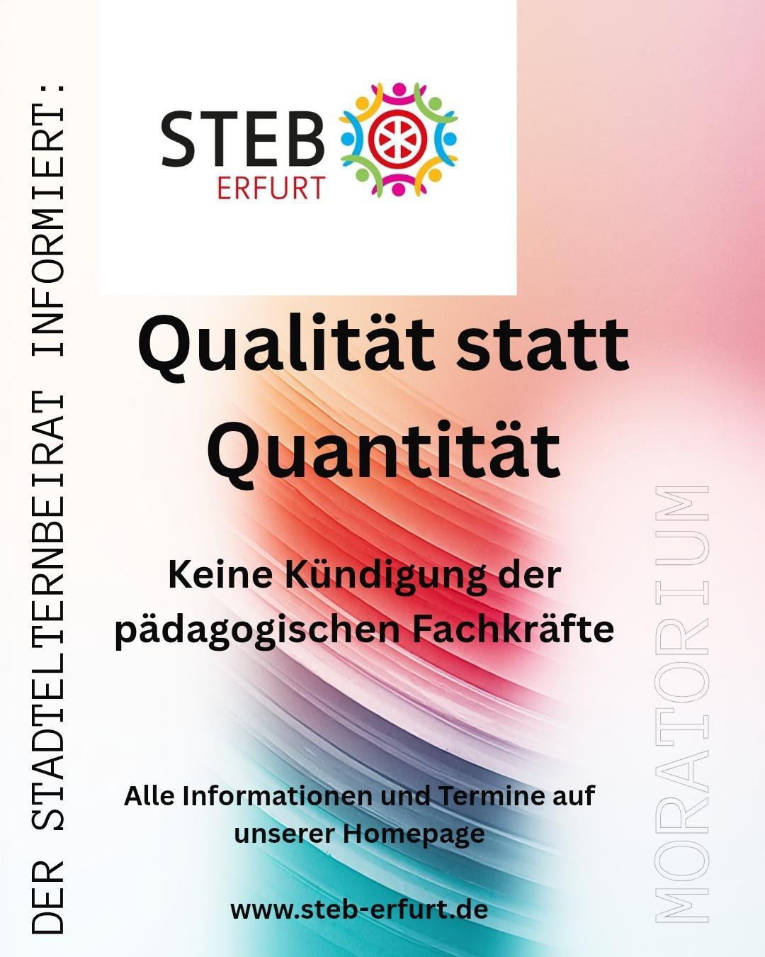 Ihr könnt uns jederzeit über unsere Website www.steb-erfurt.de erreichen oder direkt eine Mail an vorstand@steb-erfurt.de senden. Für den gewählten Elternvertreter der Kita inklusive Stellvertretung gibt es eine eigene Infogruppe beim Messanger Signal. Am 11.März 2026 findet die nächste Sitzung der beiden Vorsitzenden des jeweiligen Elternbeirates der Kitas statt.